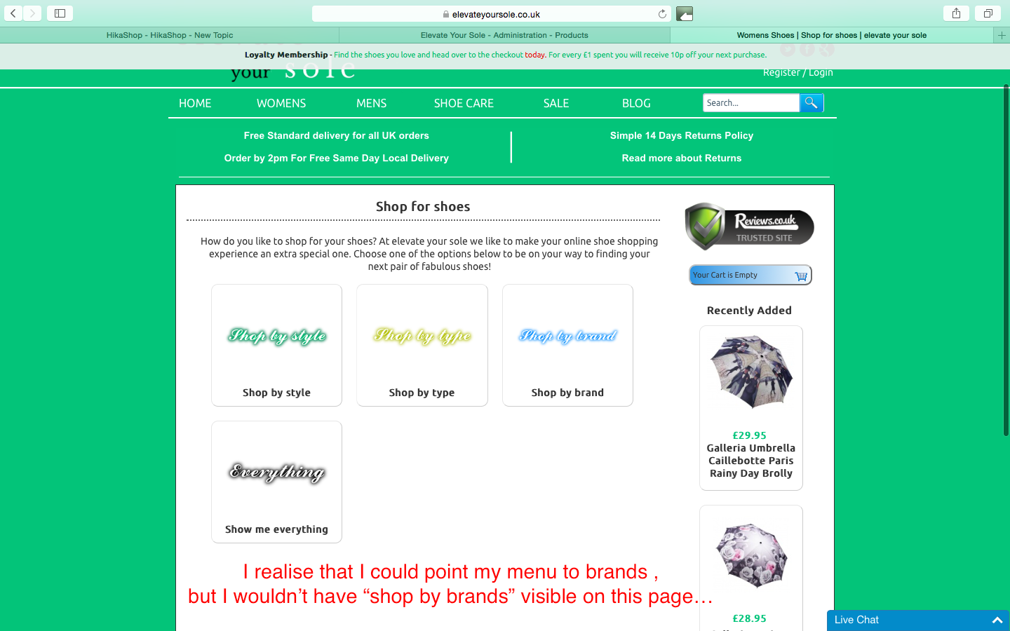 Instead, you should create a Joomla article with four links, each one linking to its category listing menu item or brands listing menu item and then have that article display on a page instead of that categories listing where you're trying to add the brands listing.