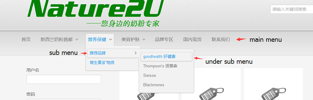3. You have to change the settings of the category listing menu this time, select "div" for the "type of layout" option and the value "title", for example, for the option "Type of item layout".
