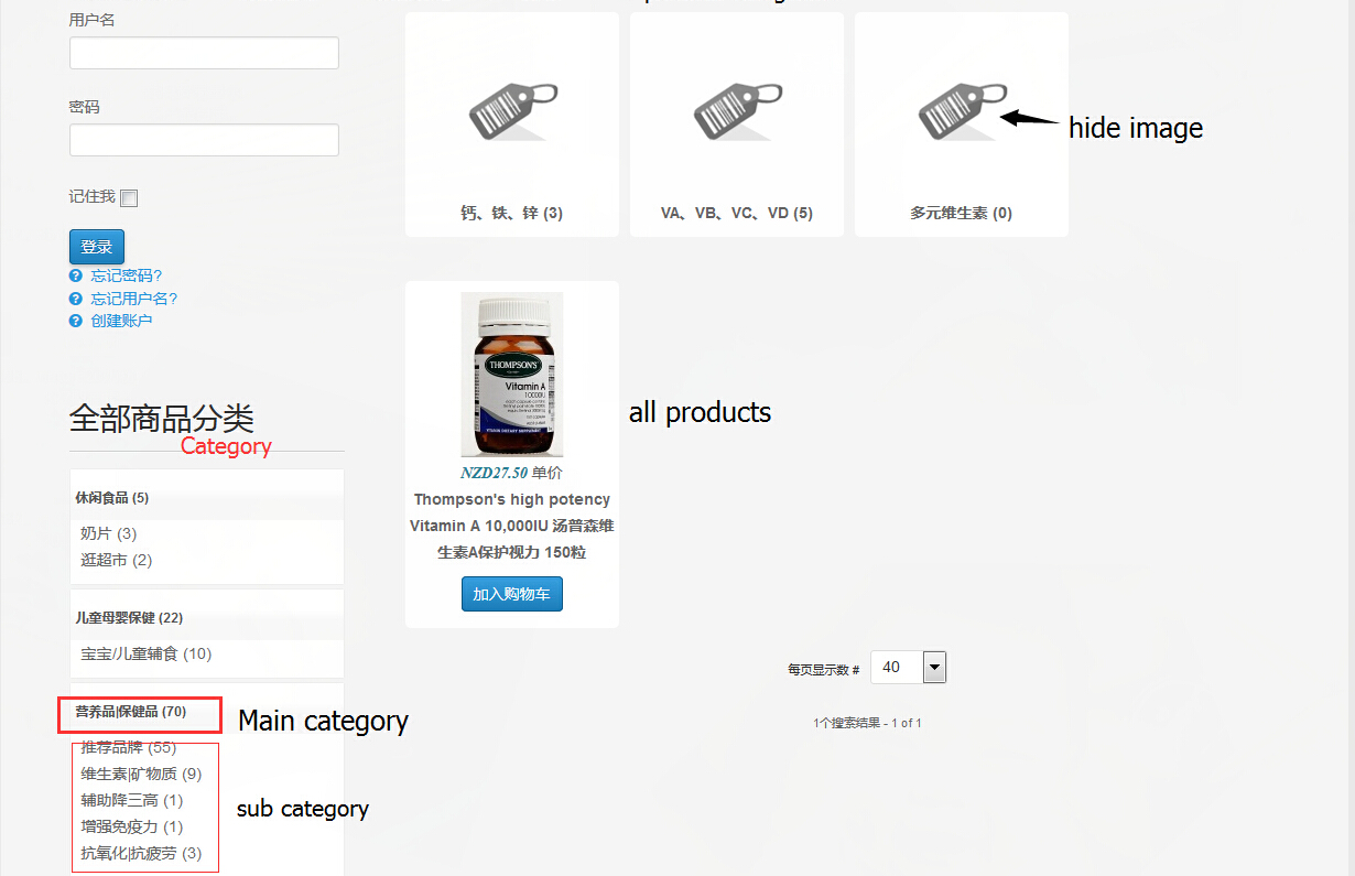2. The categories are displayed thanks to a menu, then a module is attached to this menu, you have to edit the settings of that module in order to set the value for the option "Sub elements filter" to "all sub elements". These settings can be found under the menu Display > Content menu, select the category listing menu, then scroll down to the associated module part.