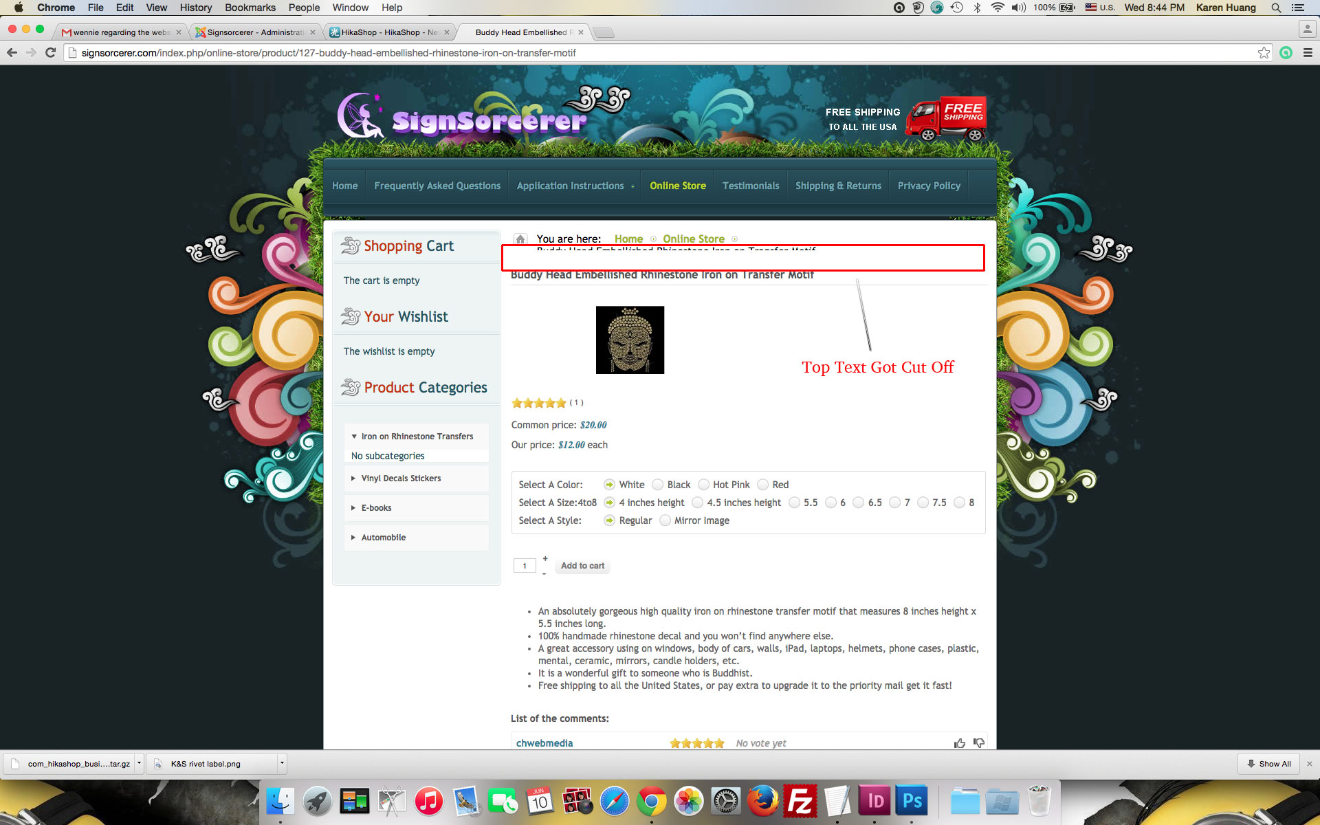 I am trying to add my first item under the vinyl stickers category, mickey mouse baby on board decal.........i am running with two problems.