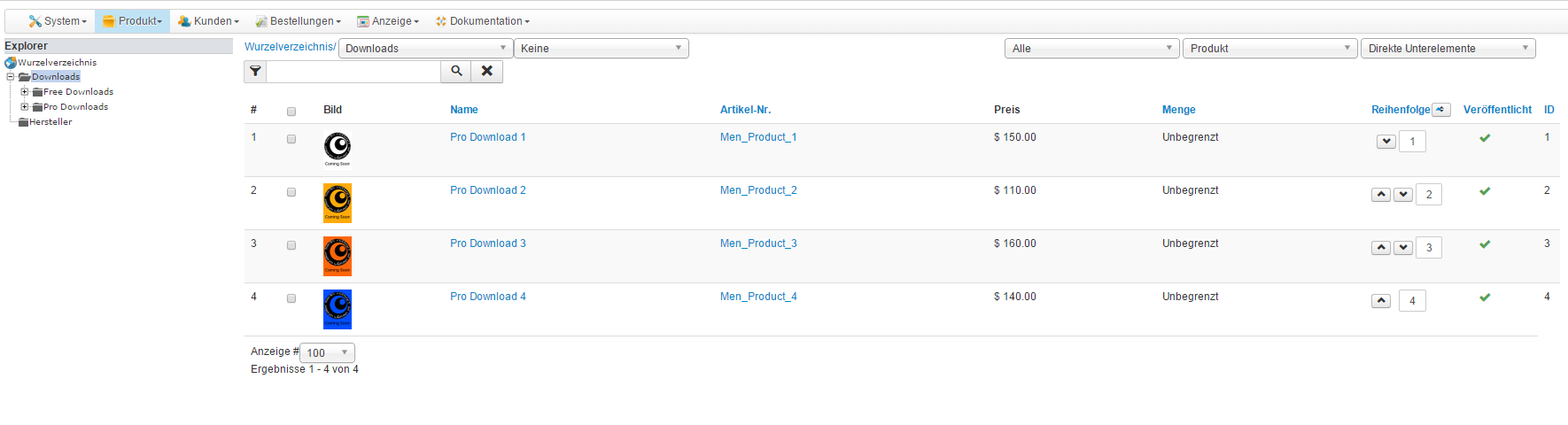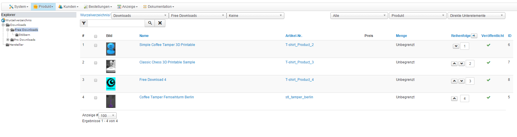 After that, your category listing menu (ID 124) is configured to display a product listing.