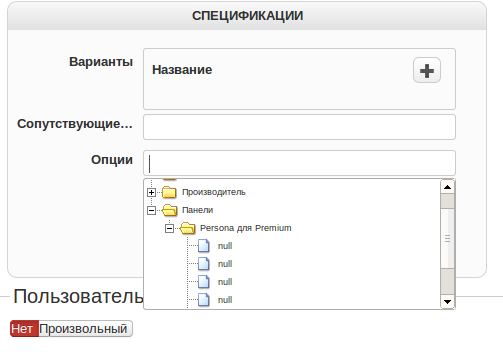 In backend hikashop when I'm try select products in tab "options", they display as "null".