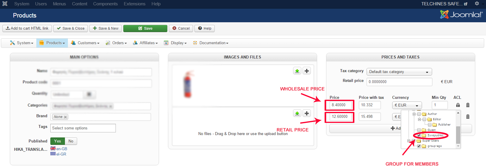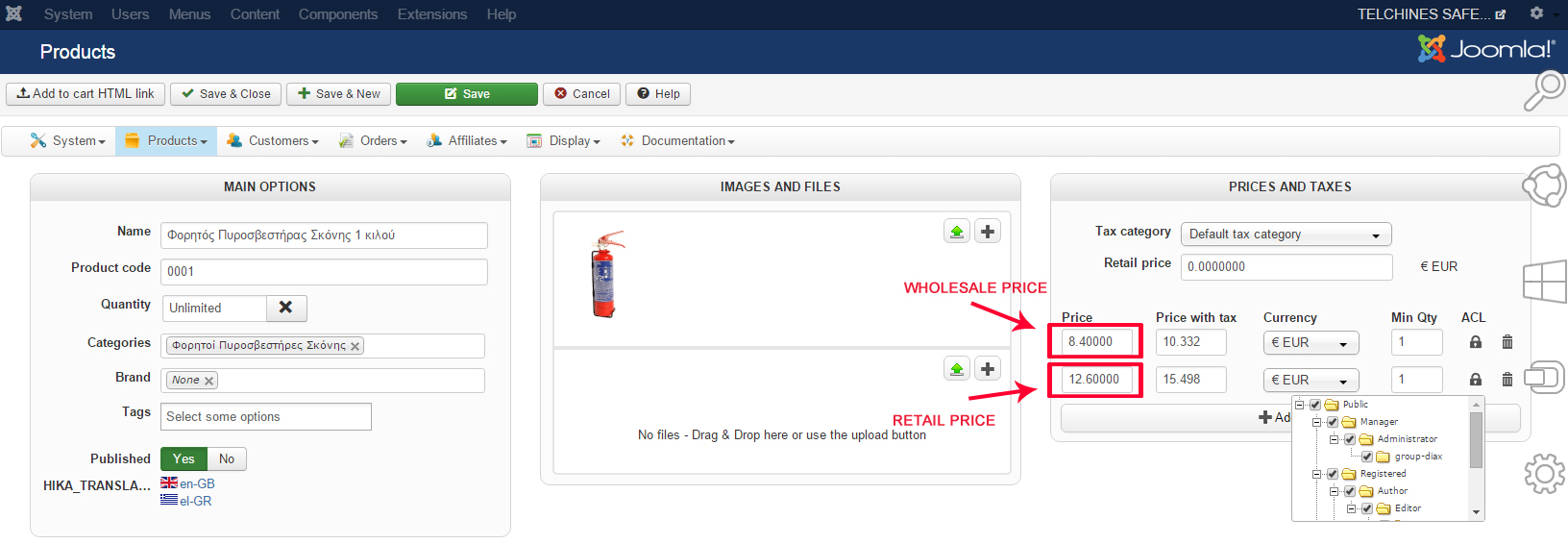 So, right now group "Πελάτες" can see only the first price, but if i click on the product i see 2 prices but the second price has no title.