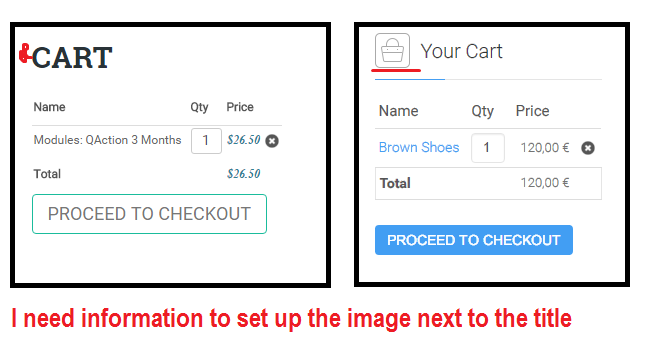 I need to show a image next to the title of my cart, i see you do this in your webpage but i don't know to do in my webpage.