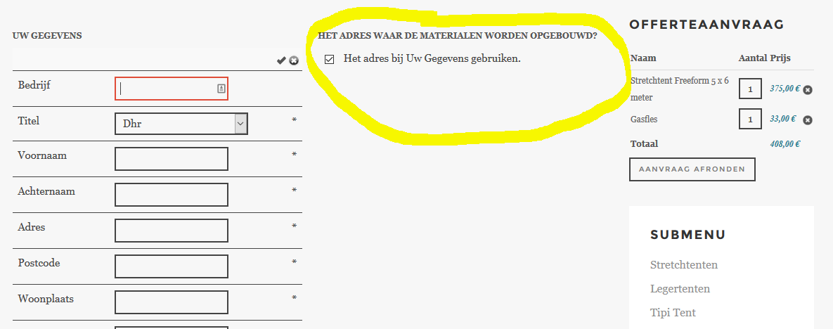 I would like not show the column asking if the shipping address to another address (yellow) than the billing address.