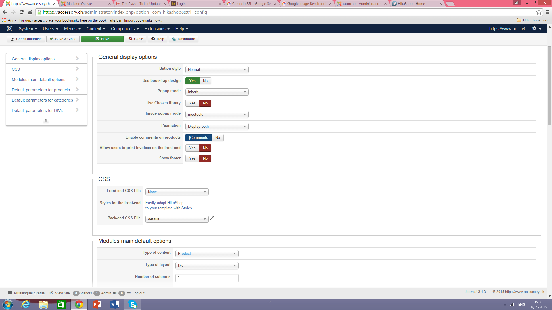 -- Joomla version -- : 3.4.3