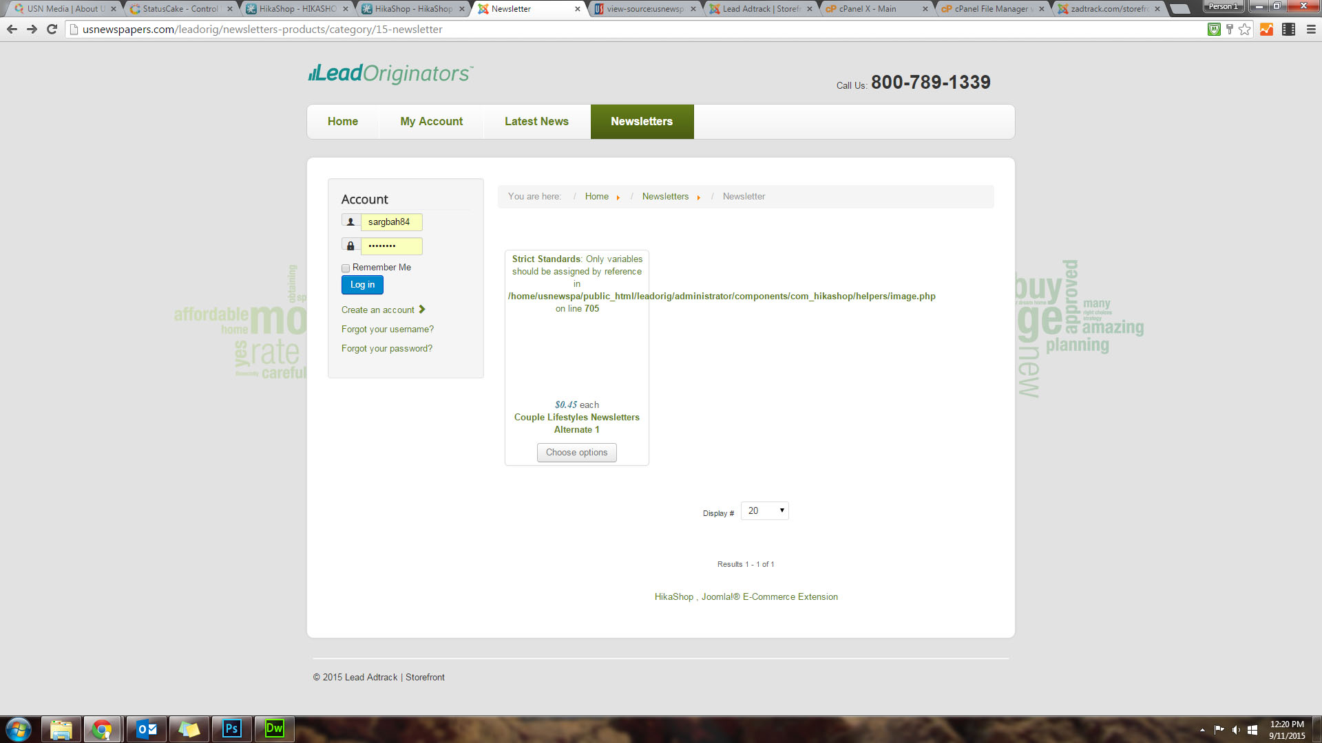 Hi, I just installed Hikashop version 2.5.0 and I'm seeing this error on the frontend in place of the product thumbnails: Strict Standards: Only variables should be assigned by reference in /home/usnewspa/public_html/leadorig/administrator/components/com_hikashop/helpers/image.php on line 705