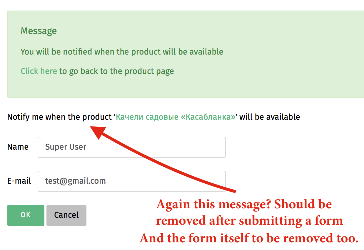 How to get rid off this wishlist notification "Notify me when the product will be available" and the form itself after submitting it?