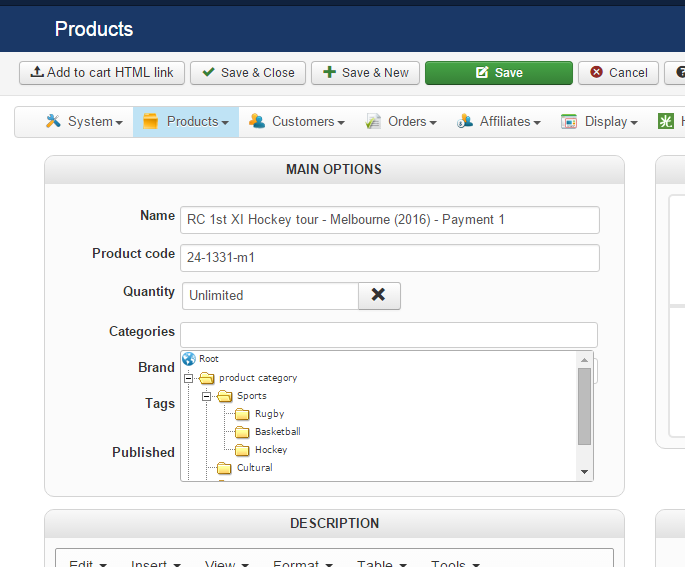 When I try and put a product into the lowest level i.e. in this case Personalised Hockey, it does not show up as an option in the product page.
