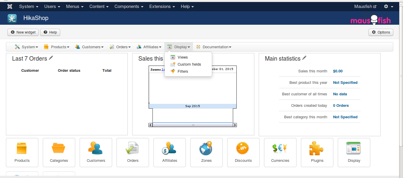 I'm rebuilding a site with hikashop,So I installed the latest package from the subscriptions page.But when I check the display menu in the hikashop dashboard,the content modules are not displaying-No menu item at all.