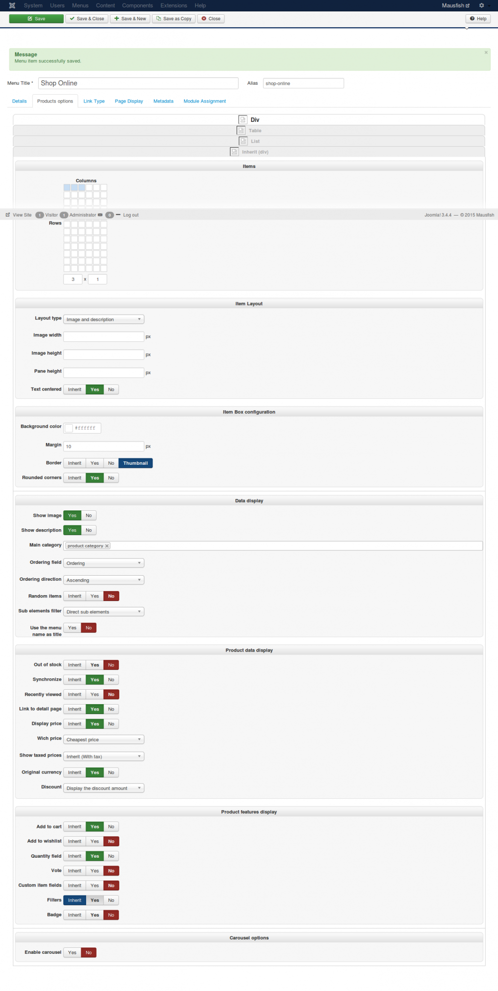 I'm using the latest version of hikashop for my website,I really like the new idea of adding the module options to the menu.It's so much easy to interact with Hikashop now.