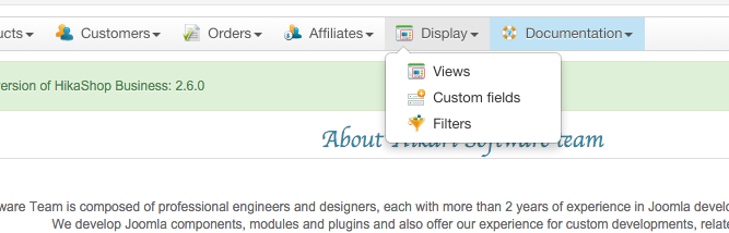 With this new version of HikaShop the menus and modules settings for HikaShop are directly present in the Joomla settings.