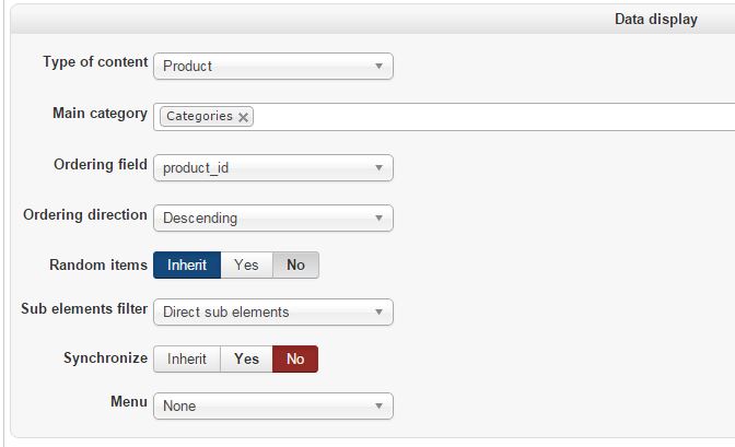 So to manage the product listing of a category listing menu, you have to edit the desired menu in Joomla and then change the settings of the "Product options" tab.