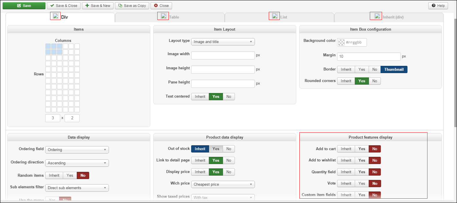 Issue 2: If we look in the image, we will notice that the icons are missing. These images are to be found in media/com_hikashop/images/icons folder which does exist and does have these icons. However, they are spelled differently in the folder and in the code. For example, in the folder, the icon for DIV selected is called