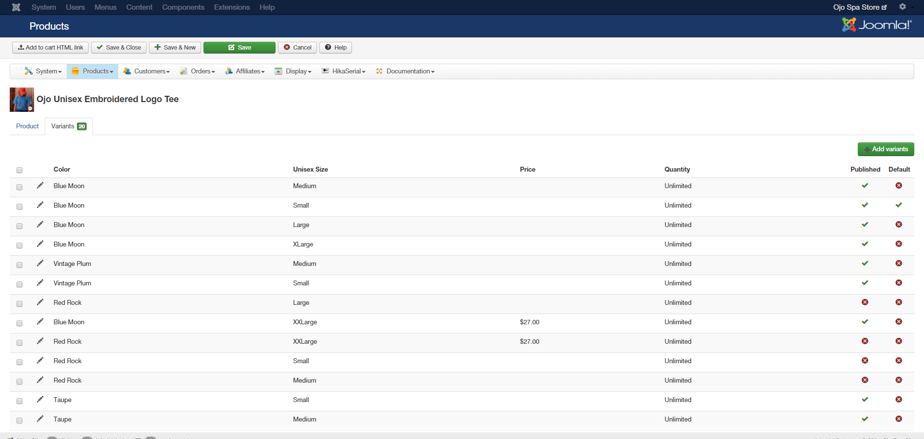 In the variants tab of a product, I have un-published all of the variants of a specific color (Red). After saving my updates and clearing both the Joomla cache and my browser cache, the Red color option is still showing on the product page.