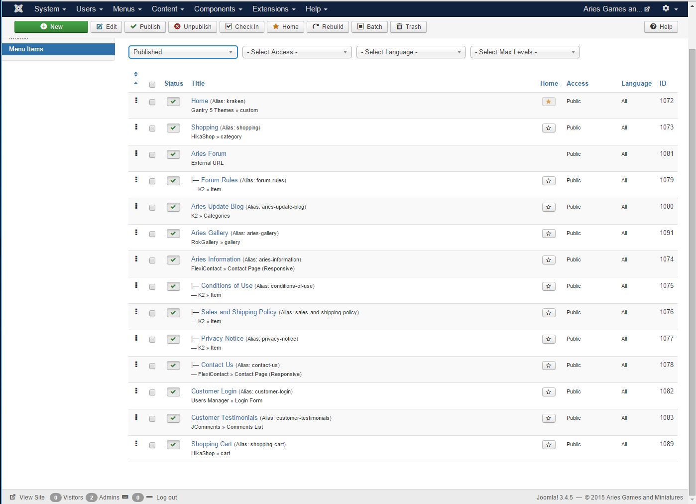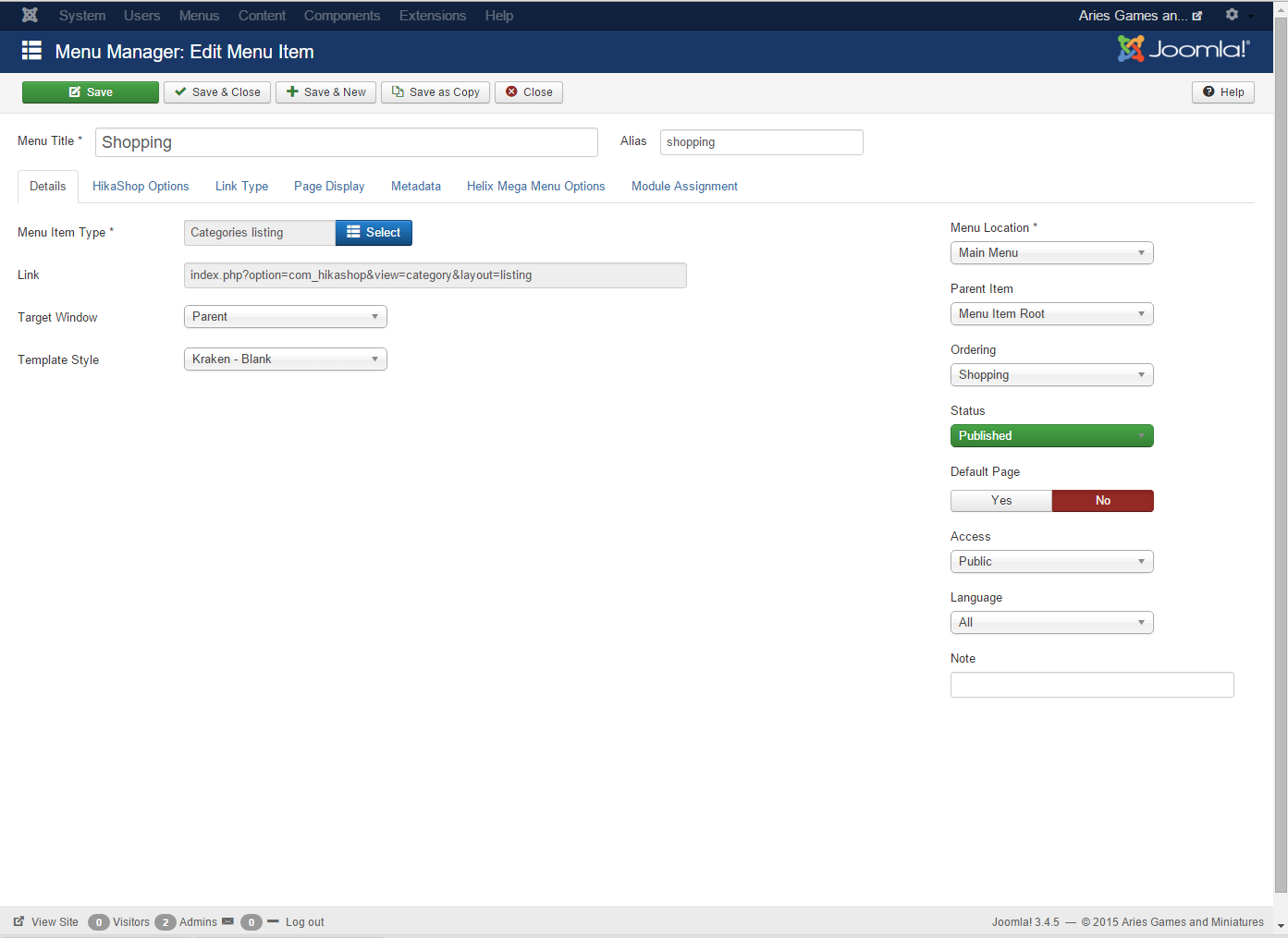 -- Joomla version -- : 3.4.5