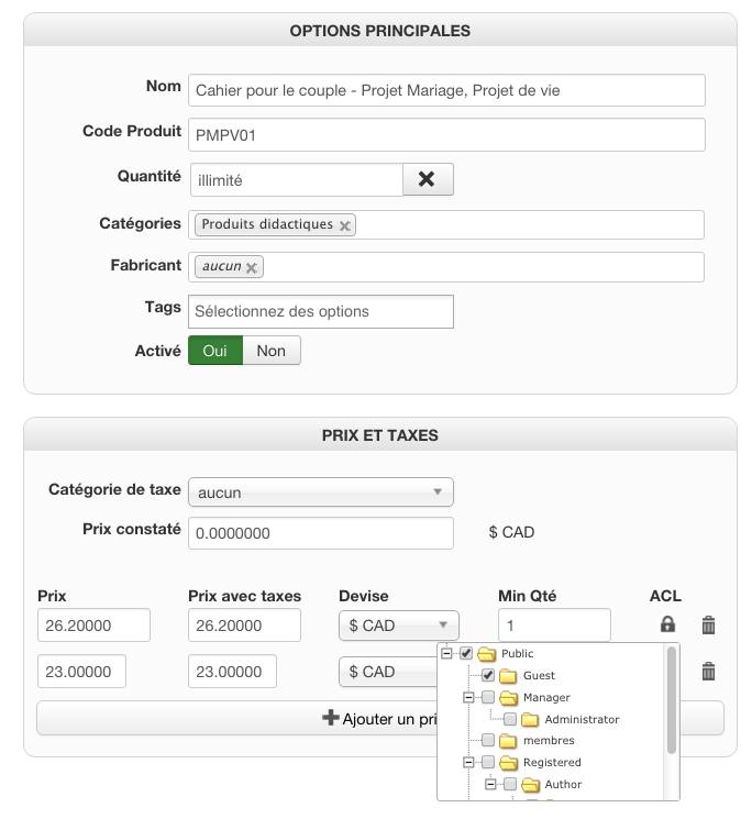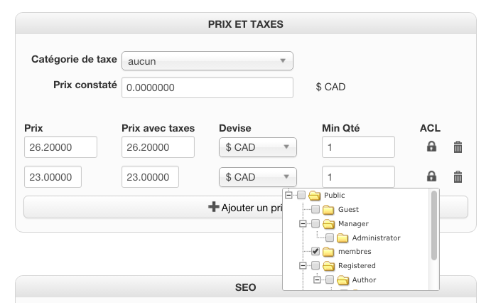 Now, you're giving screenshots of your product settings, saying that you configured ACLs on the prices (not on the products themselves).