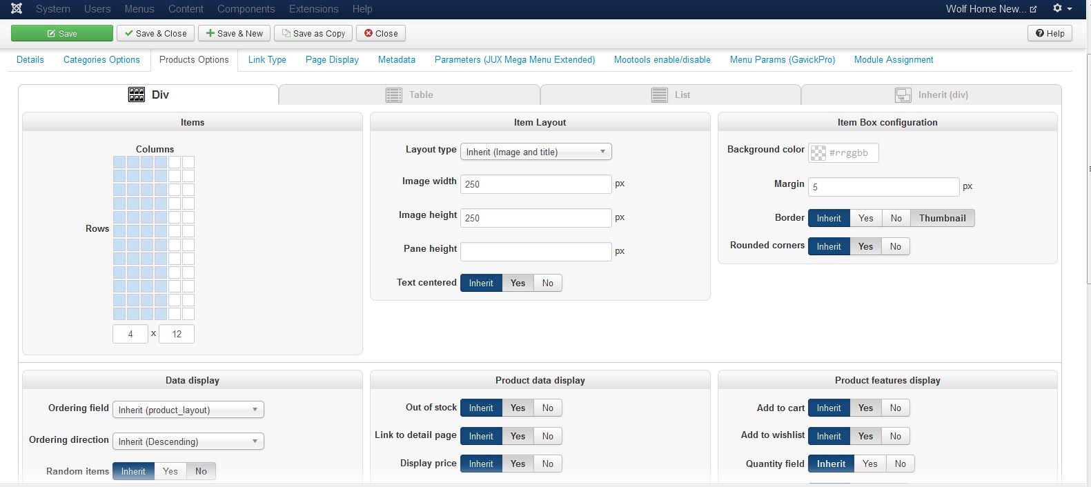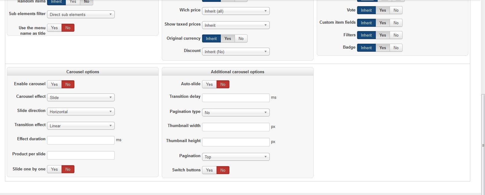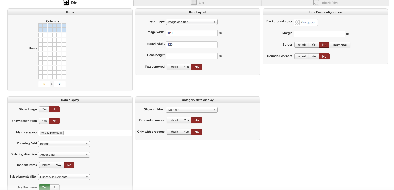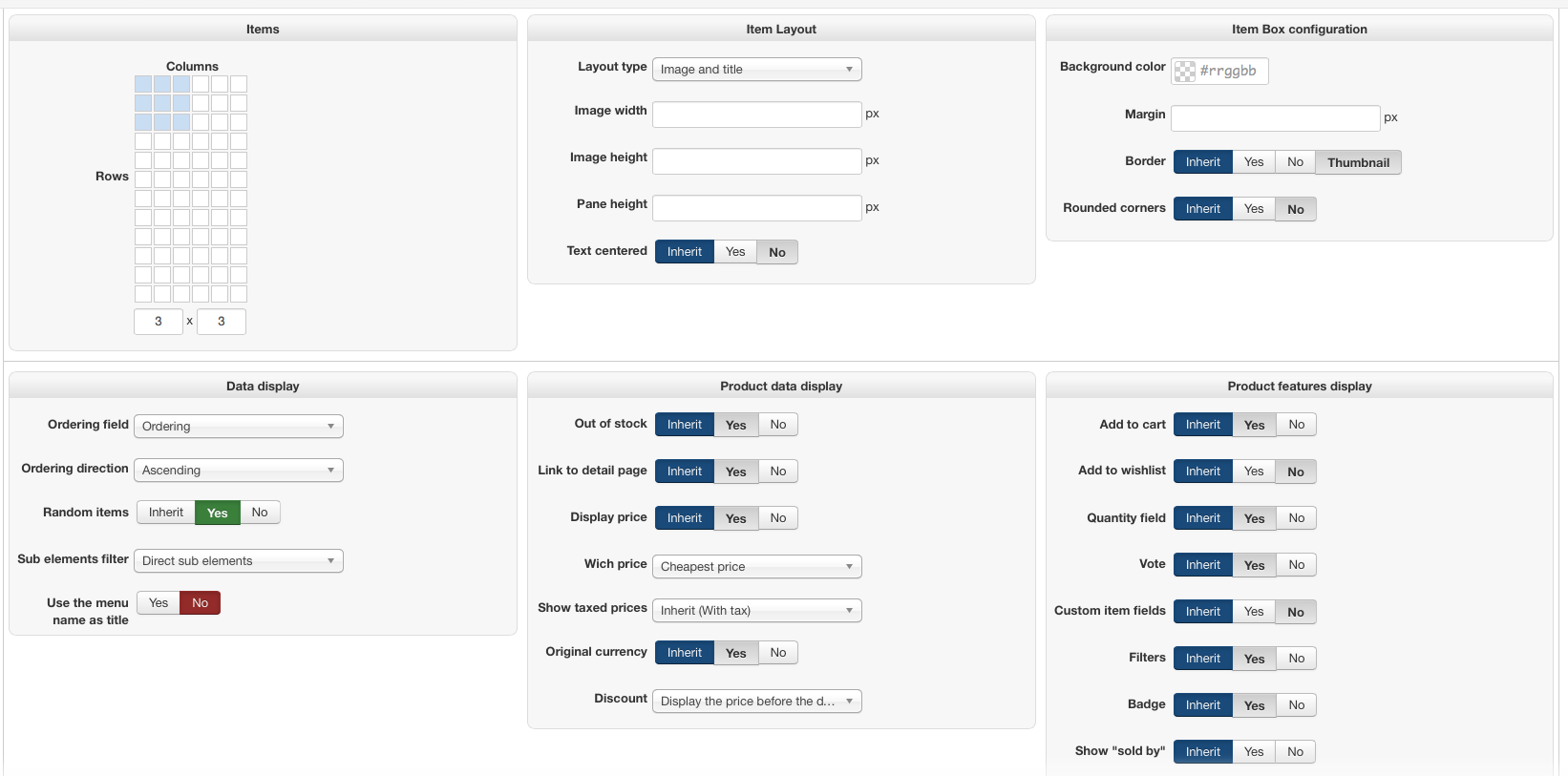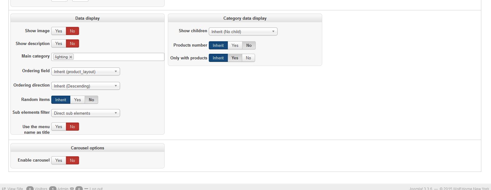 And when you edit a "category listing" menu ; you will have two tabs in the Joomla menu edition, one for the category listing and another for the product listing which will be display just below the categories.
