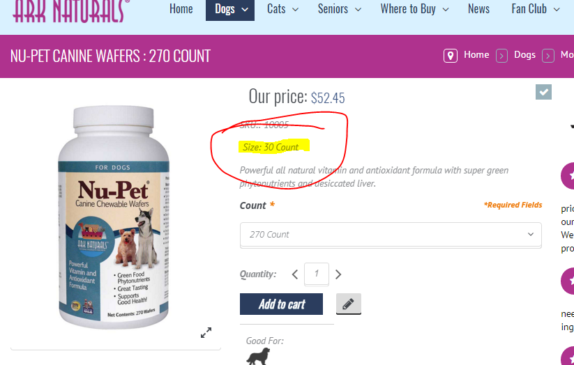 -- Error-message(debug-mod must be tuned on) -- : When changing the product count the size doesn't change.