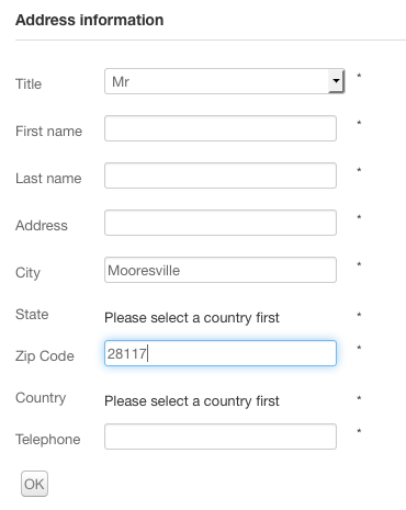 I have the state and country in the Admin as Published. Why are they not active on the site as the screen shot shows?