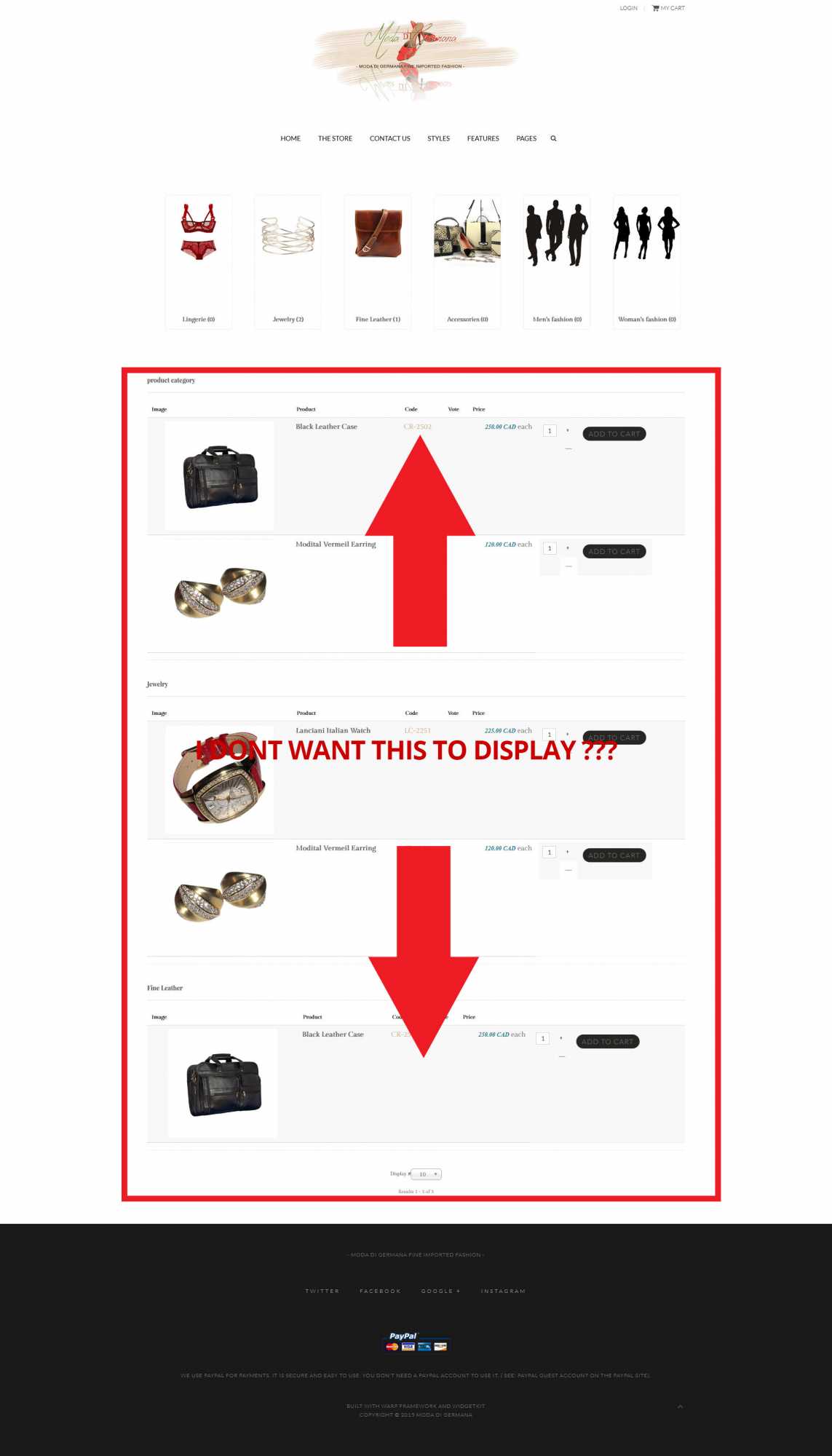 I did not enable any content module nor published one yet under the categories displayed on the The Store page (see website url) there is a listing of all product currently stored in the store. How can I disable this ? I've even trashed HikaShop content module to no avail ??? Help