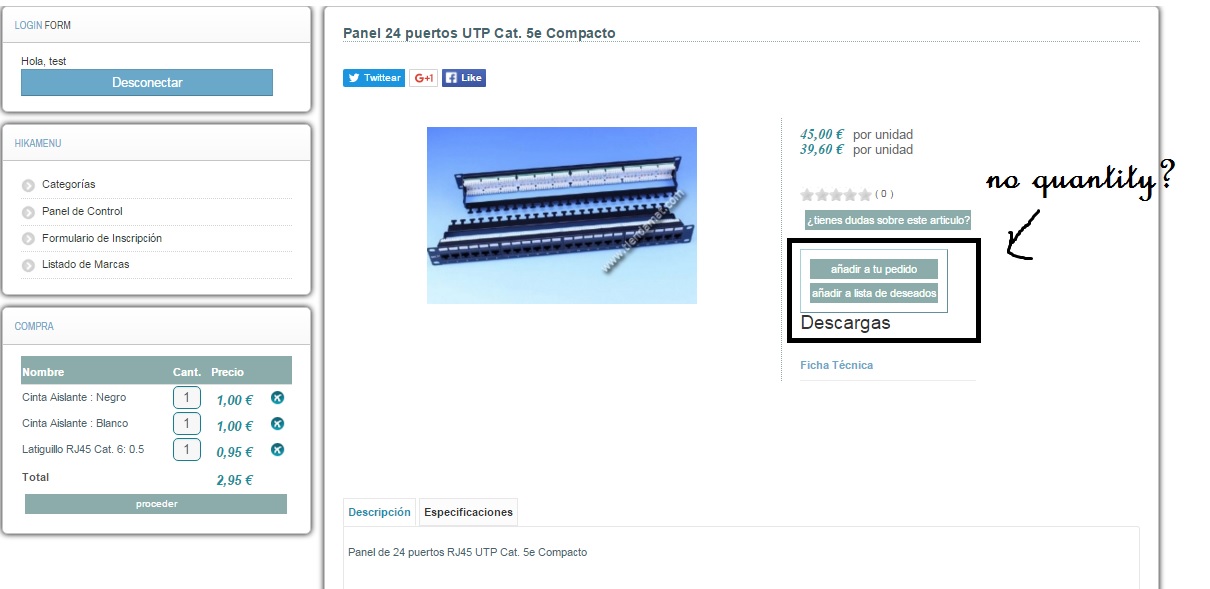 b) On the products that doesn't have charactheristics, it doesn't allow me to chose quantity: