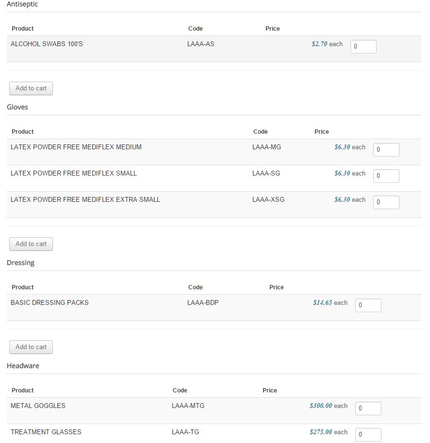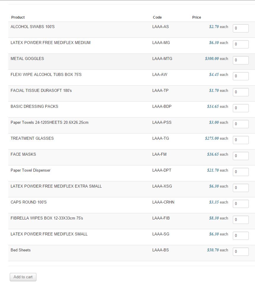 What i want is to have the products grouped, but only one add to cart button at the very end of the page.