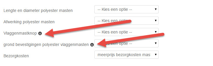 When pointing with the mouse on the information sign, the text which is in the description on the product (in this case Vlaggenmastkop) is displayed. If NO description is added to Vlaggenmastkop, nothing is displayed when hovering over the information sign.