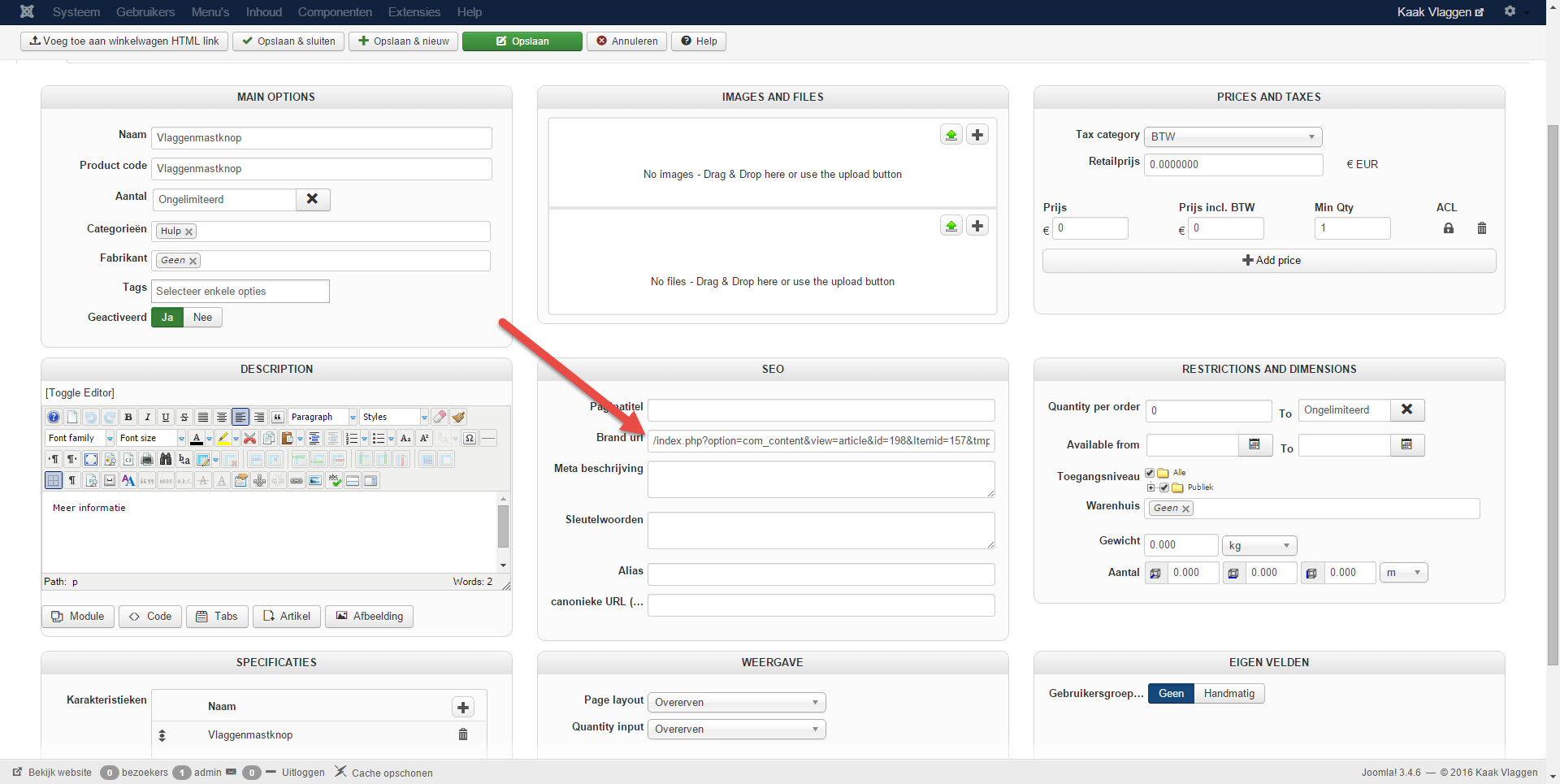 When looking at the 'i' on your website the url shows www.kaakvlaggen.nl/webshop/product/171-p...-vlaggenmasten.html# which is not the correct one. Have you DL the latest HS build, they release one yesterday with a hot fix.