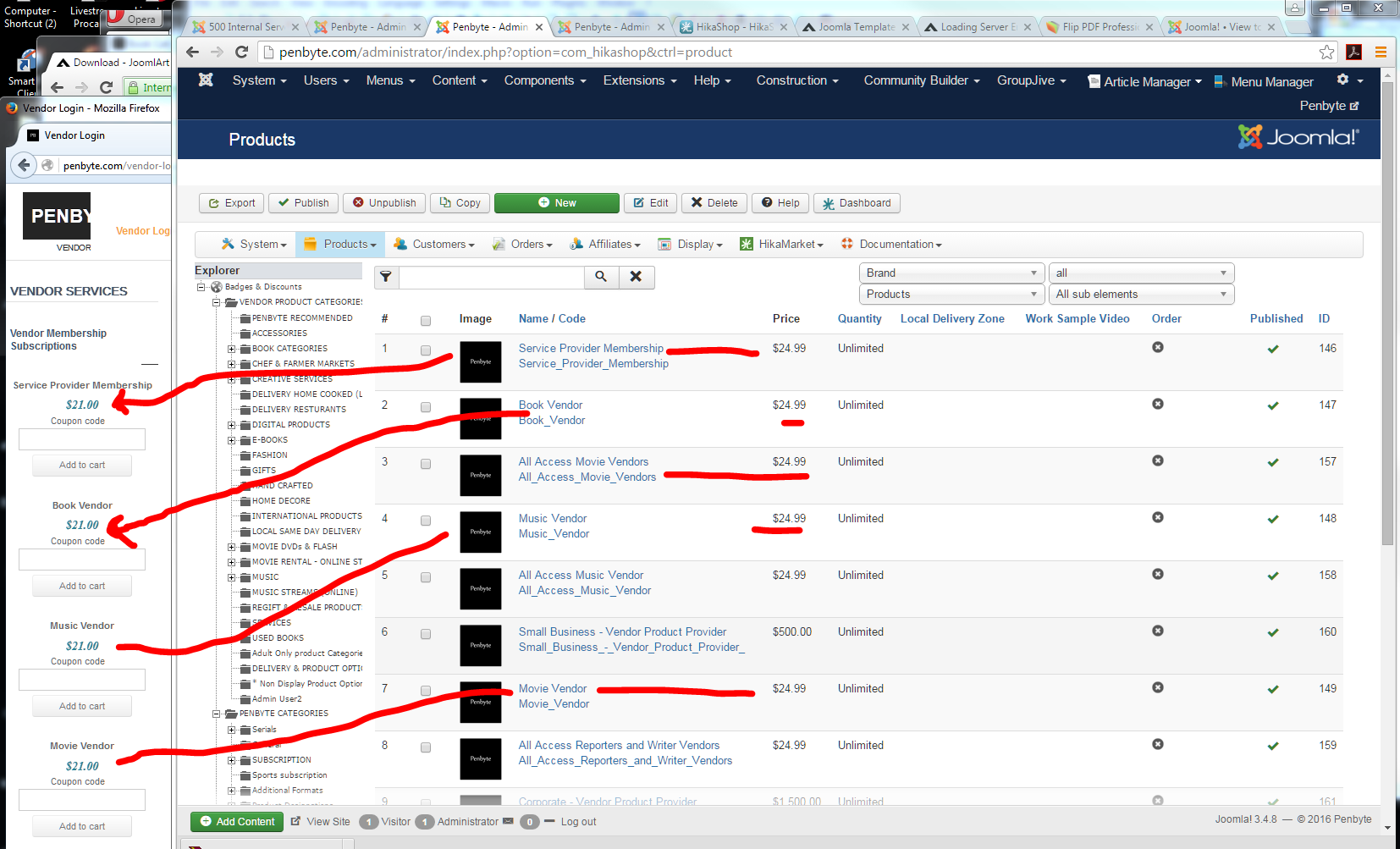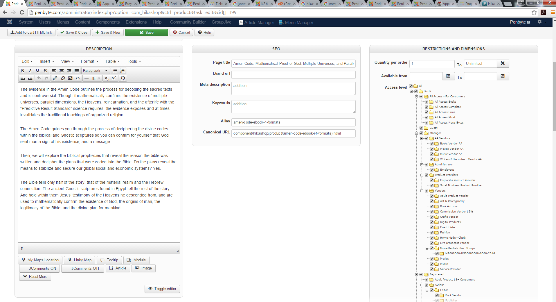 I also attempted to reload Hikashop and Hikamarket, using both browsers chrome and firefox, and still no change in problems.