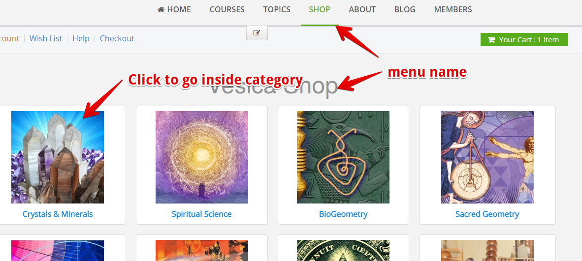 New category link: index.php?option=com_hikashop&ctrl=category&task=listing&cid=71&name=crystals-minerals&Itemid=596