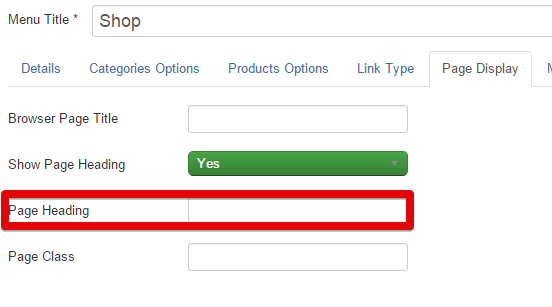 For your Item Menu you have fill the Page Heading, please let's it empty.