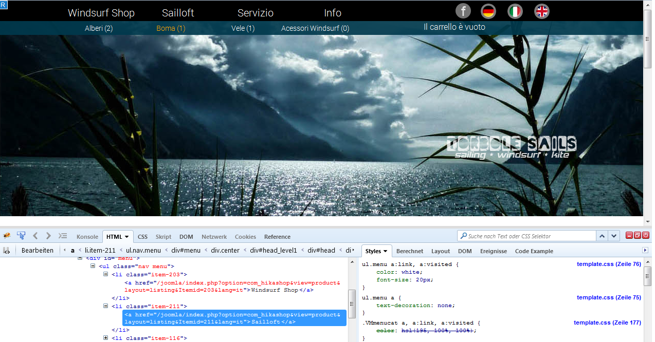 on the other hand the menu point "sailloft" with its product categories function correctly in italian language but not with the other 2 languages. is there someone who has an clue where the problem is.