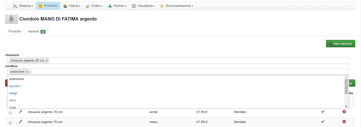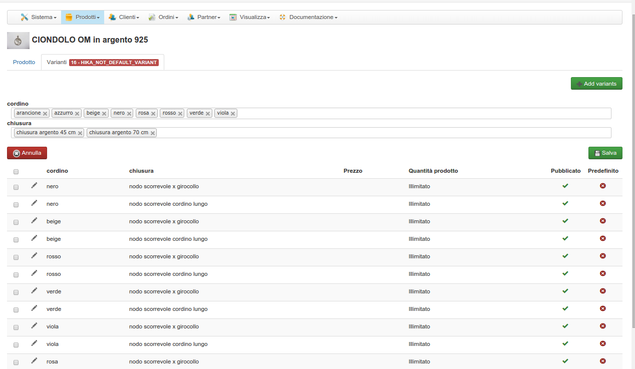 I have one pendent (product A) which can be sold in different variants with different specifications. For example i deliver the pendent with cotton string in different colors (specification A) and different types of locks (specification B ).