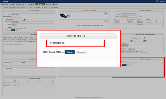 - You will now reach your product backend configuration, looks for Custom Fields part