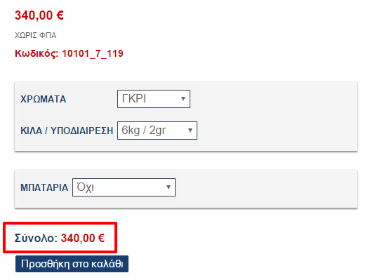 In many of my products there are options and characteristics, each one of the options has a different price that is added to the original price of the product. All the prices are displayed without tax.