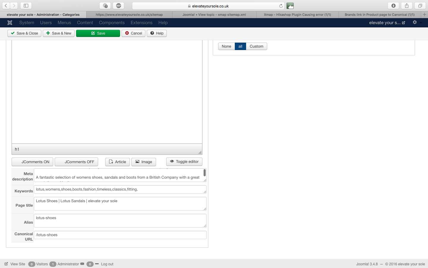 echo JText::_('MANUFACTURER').': '.'<a href="'.hikashop_contentLink('category&task=listing&cid='.$manufacturer->category_id.'&name='.$manufacturer->alias.'&Itemid='.$Itemid,$manufacturer).'">'.$manufacturer->category_name.'</a>';I'm thinking that you customized your views with an old code where the brand link is generated with hikashop_completeLink instead of hikashop_contentLink and thus it doesn't take into account the canonical URL.