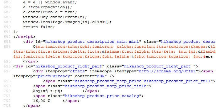 Try to switch the "editor" setting of the HikaShop configuration to "none" and edit your product. Check that the description is correct, if not set it with the greek letters and then try again.