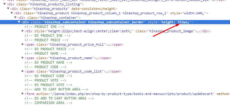 On the real site with the older version of hikashop it doesn't have any inline heights that I can see