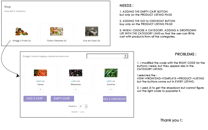 I'd like the cart to be on only in the Category Listing page AND in the Product listing page ...