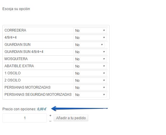 By default, the value of the product is 0 € and then each option has its price.