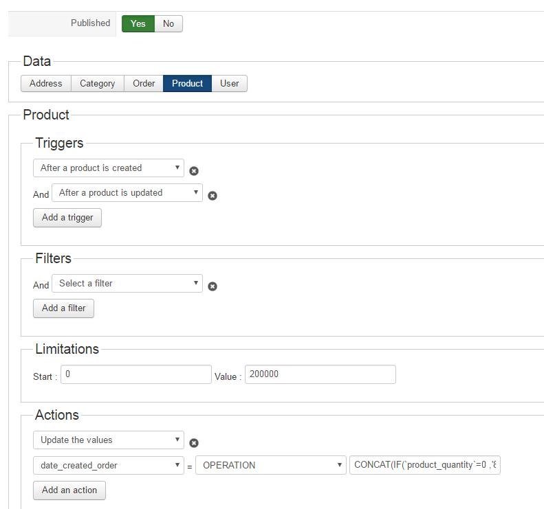 Value for operation in Actions section is: