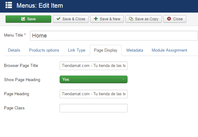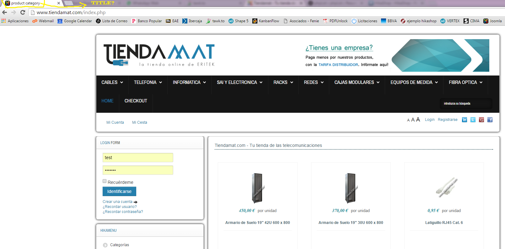 In the home page, I've created a product list through the product category menu. The problema comes, that in the browser, it doesn't show the name of the shop (Tiendamat), it shows "product category".