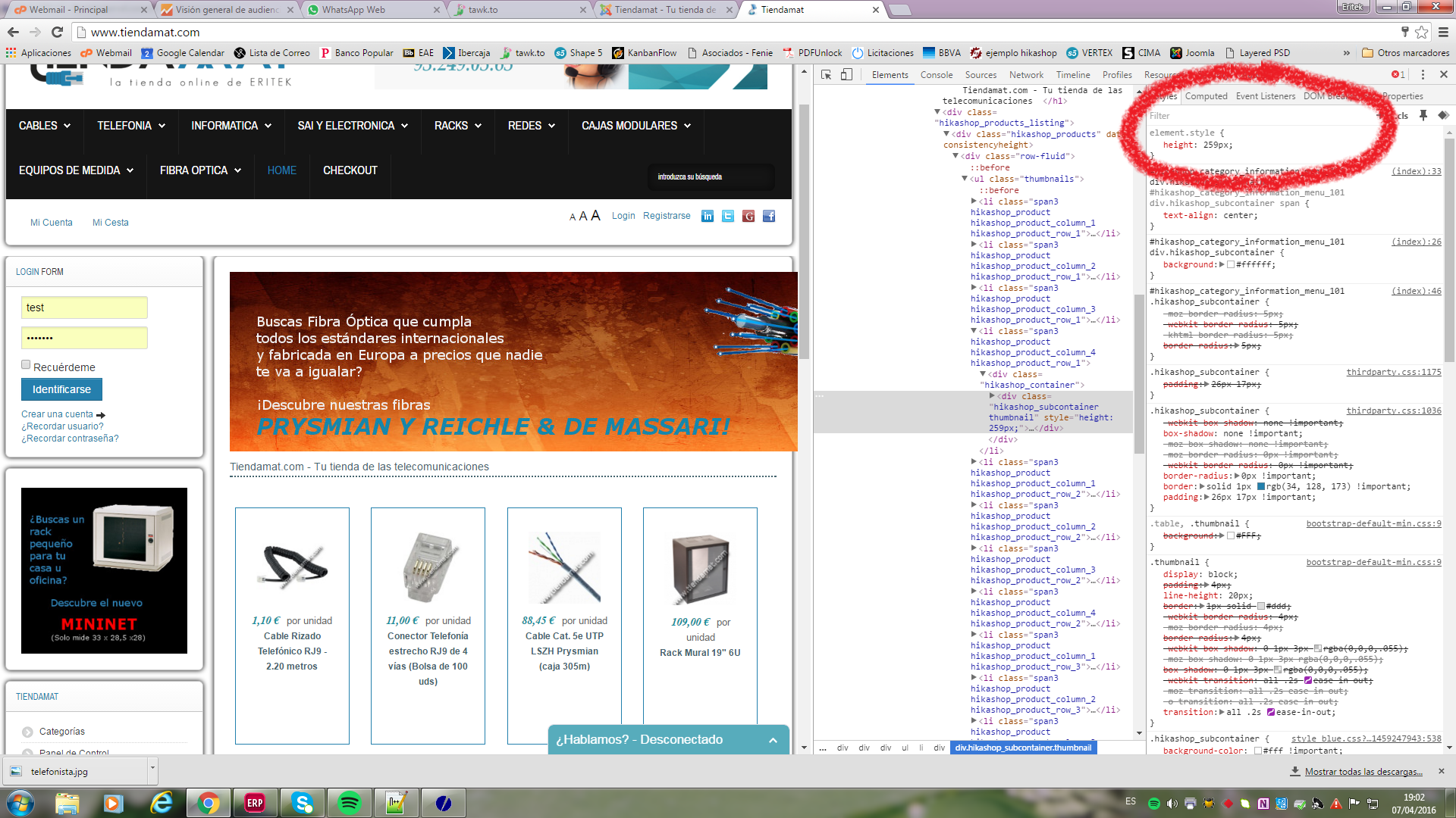 -- url of the page with the problem -- : www.tiendamat.com