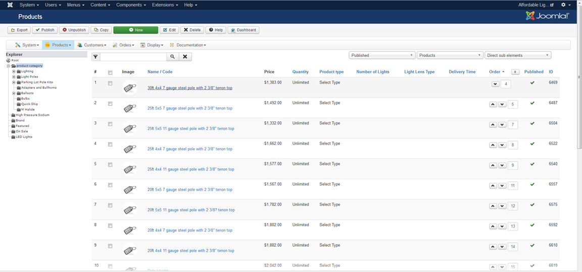 I noticed that if I created a category type menu item and used Product Category as the category that there are items on that page. Going to the backend and filtering the products to show direct sub items from "Product Category" that there were 19 "Products" clicking on the "products" in this list opens a page to a product, but not the one listed in the list. For example, In the list for "product category - Direct Sb Elements" the first item is "30ft 4x4 gauge steel pole with 2 3/8" tenon top" . Now, this is a characteristic option - not a product. If I click on this it opens "1 Light Adjustable Option" that is a product in the "LED Parking Lot Pole Kits". By far the craziest thing I have seen in the 4 years we have building with Hika.