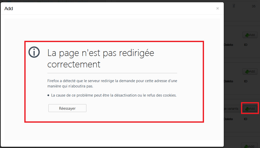 Firefox a détecté que le serveur redirige la demande pour cette adresse d'une manière qui n'aboutira pas."