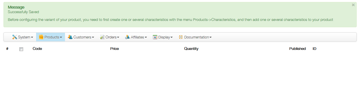Quand je clique sur manage caractéristique elle ne voit pas non plus la liste des caractéristiques