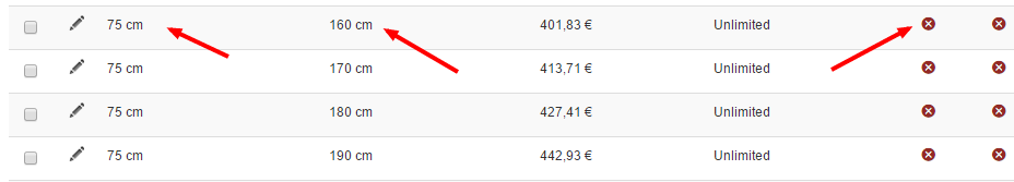 That's probably because you have another variant which need the 75 cm value of the first characteristic and another variant which need the 160 cm value of the second characteristic. So the system has to display them in the dropdown or you wouldn't be able to select the other variants using these values.