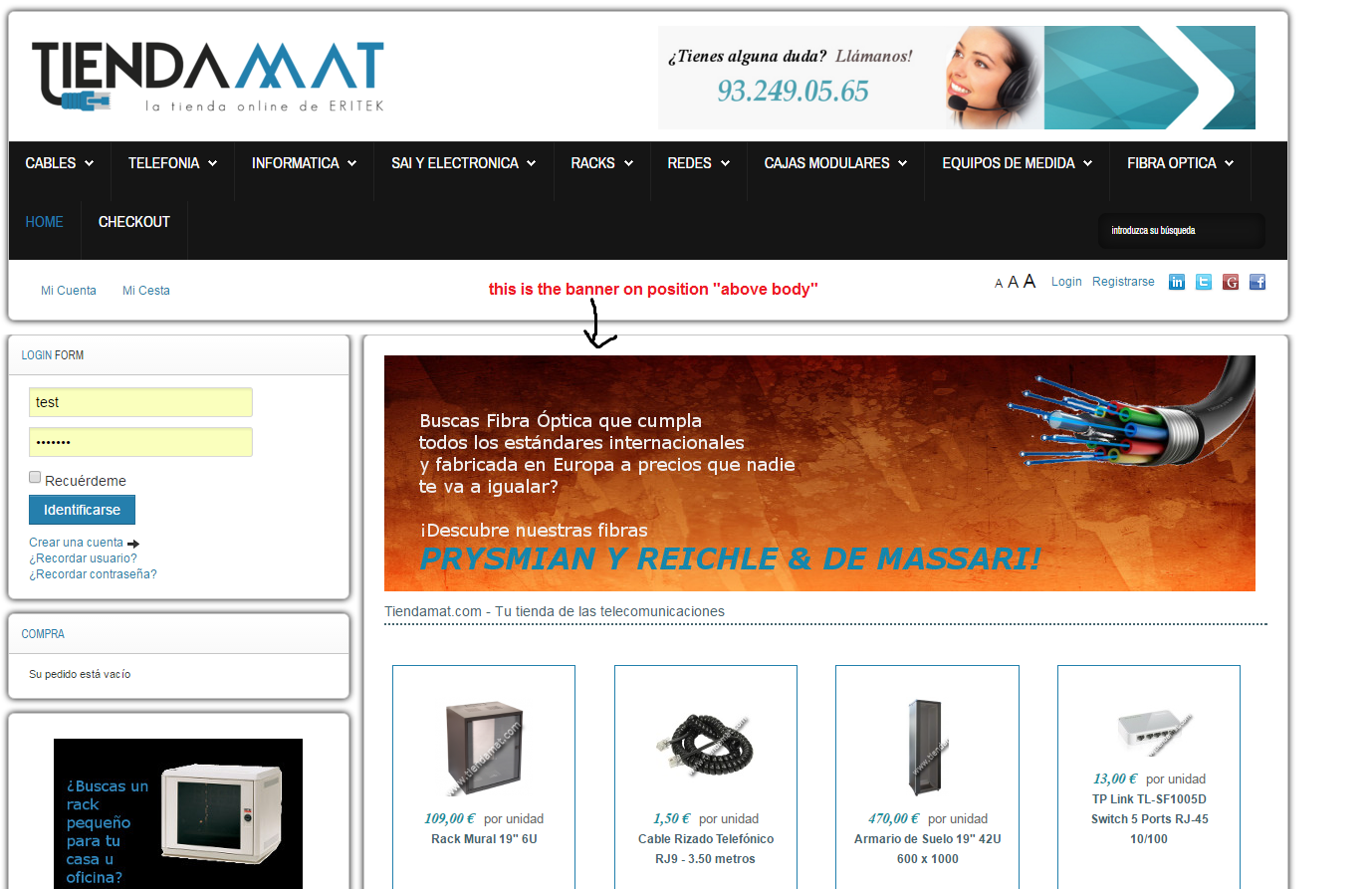 The problem comes, that I have a banner on a position above the body. It shows good in the homepage too, but there should be the only place where it should show. But then, the banner shows up on some products.