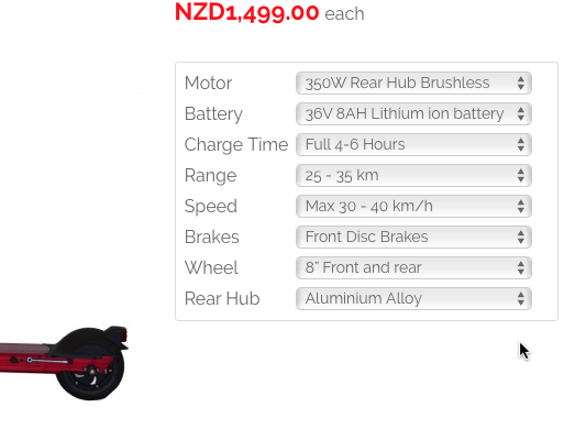 I've selected 'Table' as the characteristics selection method as I just want a plain table of product specs.